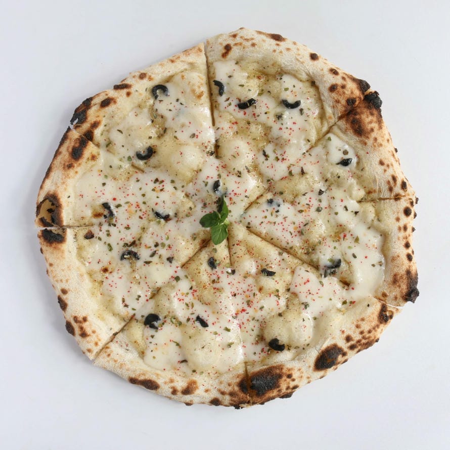 سس بیانکا،پیاز کاراملی،پنیر بلوچیز،قارچ،زیتون